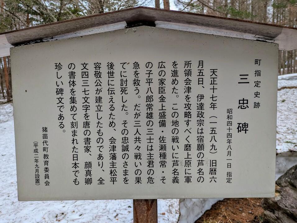 猪苗代城碑・説明板 三忠碑(摺上原の戦い古戦場)