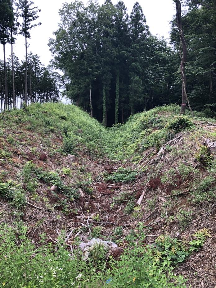 桑折西山城遺構・復元物 空堀跡