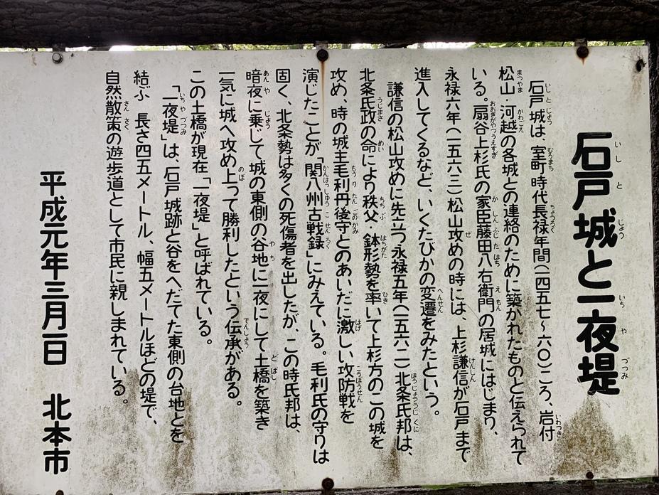 石戸城に投稿された周辺スポット(カテゴリー:碑・説明板)、「一夜堤」の情報がご覧頂けます。