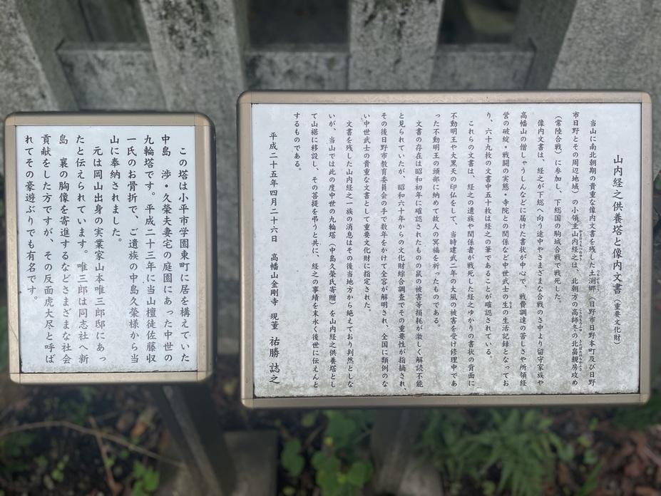 高幡城碑・説明板 山内経之供養塔