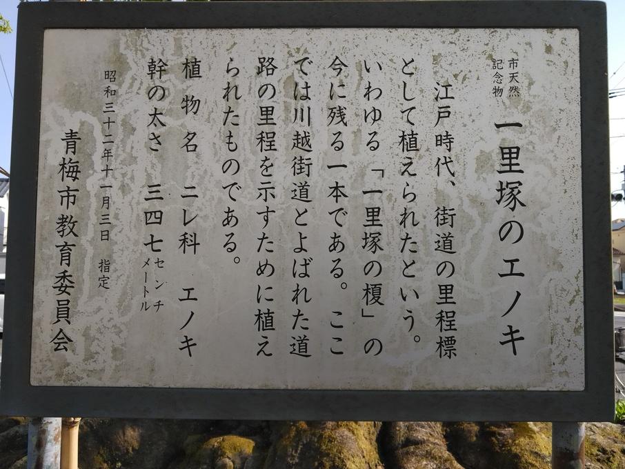 藤橋城碑・説明板 一里塚榎(川越街道)