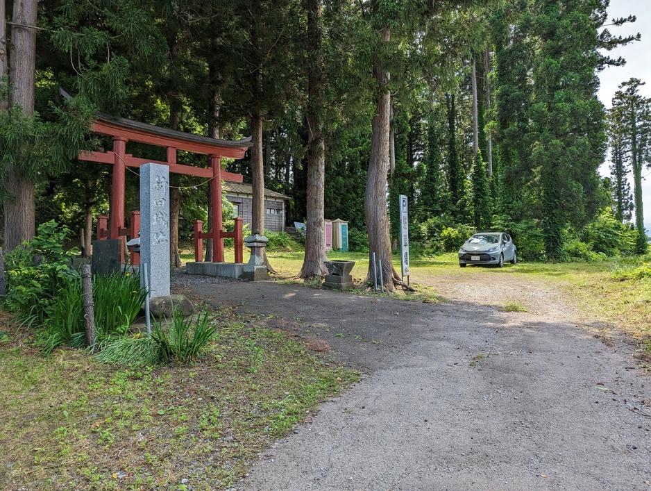 新田城碑・説明板 案内板と新田八幡宮鳥居(登城口)