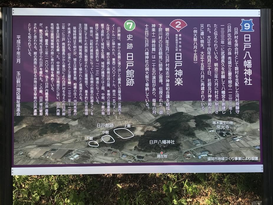 日戸館に投稿された周辺スポット(カテゴリー:碑・説明板)、「日戸舘跡・日戸神楽・日戸八幡神社の解説」の情報がご覧頂けます。