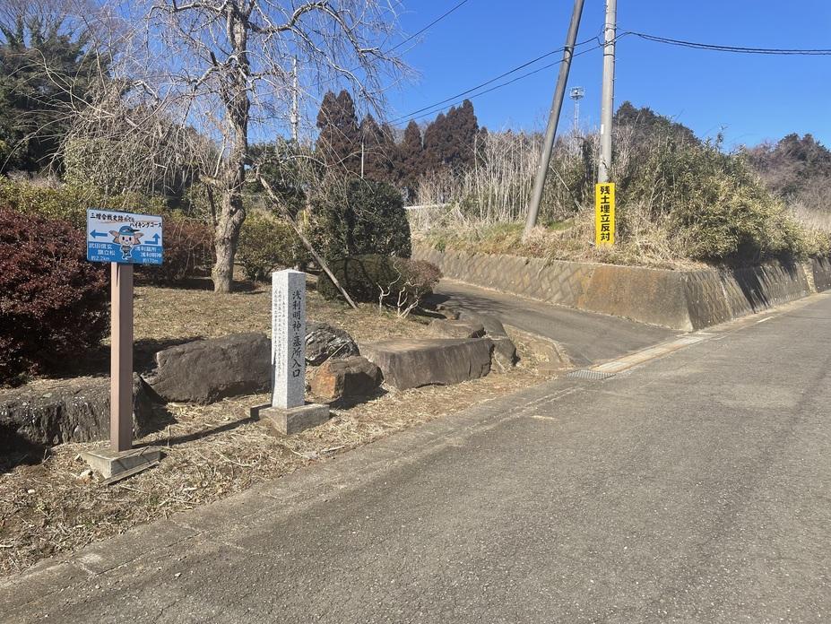 田代城碑・説明板 浅利明神・墓所入口碑