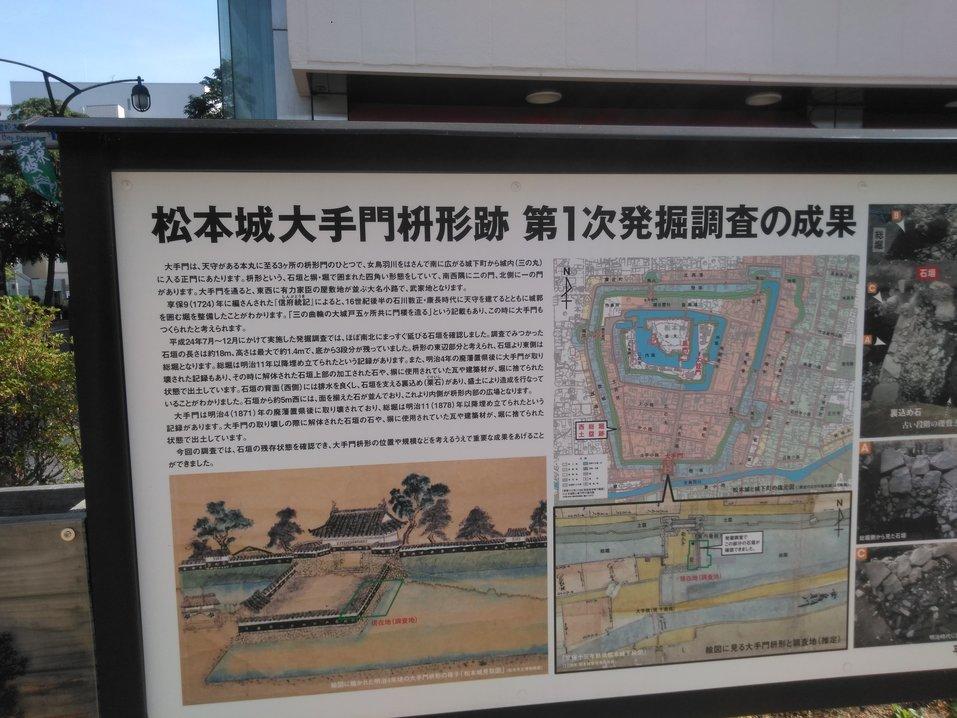 松本城に投稿された周辺スポット(カテゴリー:碑・説明板)、「大手門跡枡形跡第1次発掘調査の成果」の情報がご覧頂けます。
