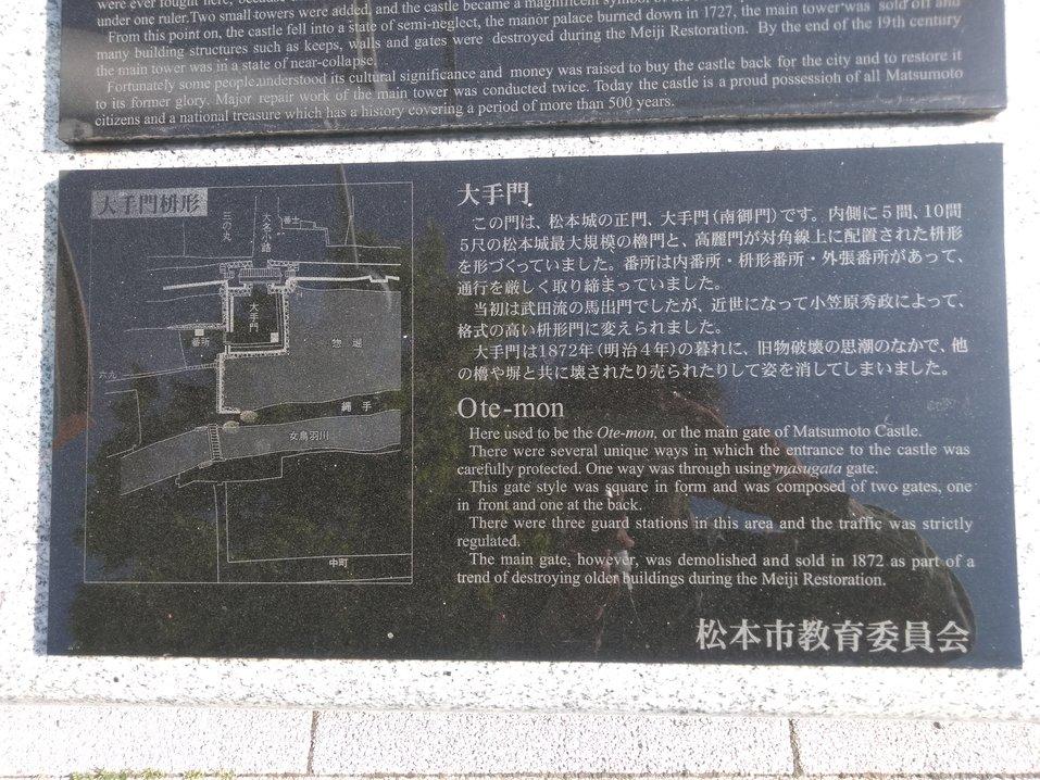 松本城碑・説明板 松本城大手門跡碑
