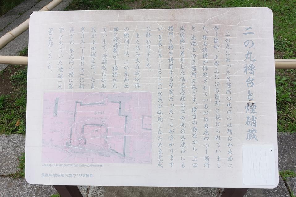 上田城に投稿された周辺スポット(カテゴリー:碑・説明板)、「二の丸櫓台と煙硝蔵」の情報がご覧頂けます。