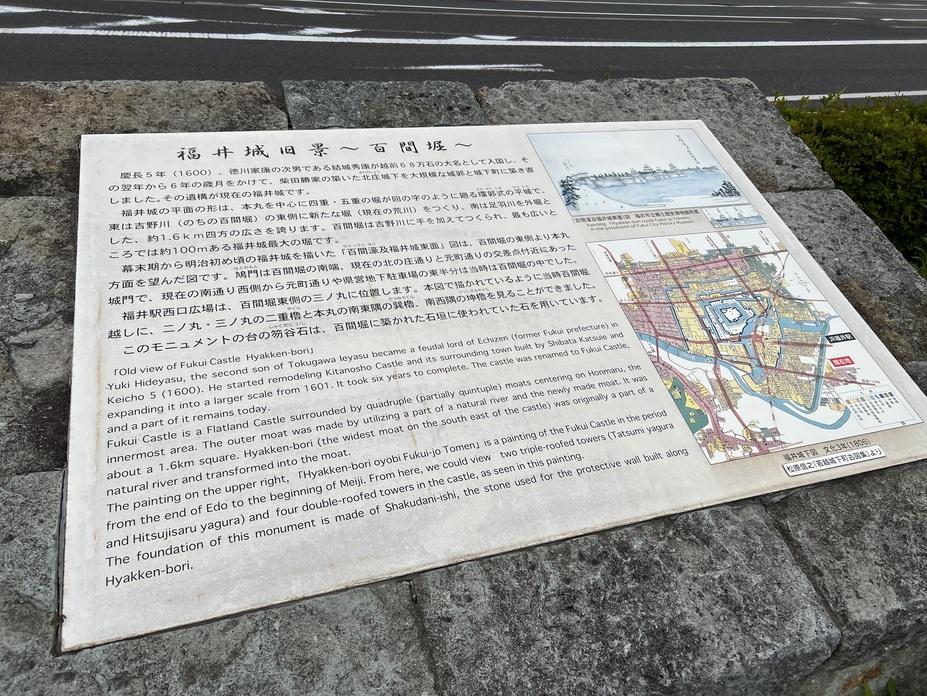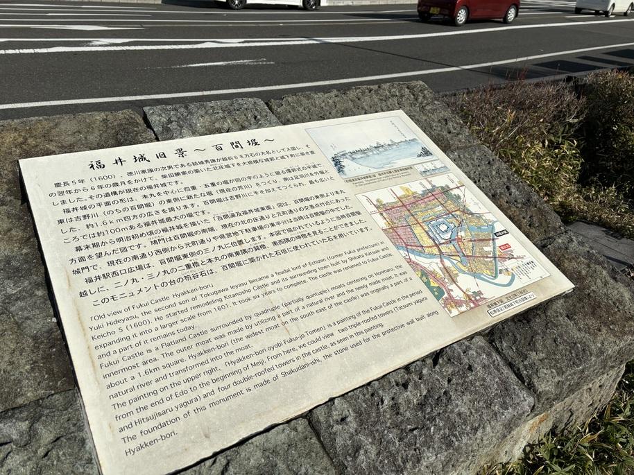 福井城碑・説明板 福井城旧景色~百間堀