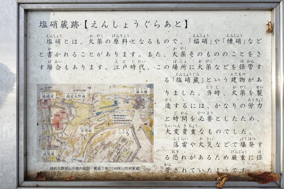 越前大野城に投稿された周辺スポット(カテゴリー:遺構・復元物)、「塩硝蔵跡」の情報がご覧頂けます。