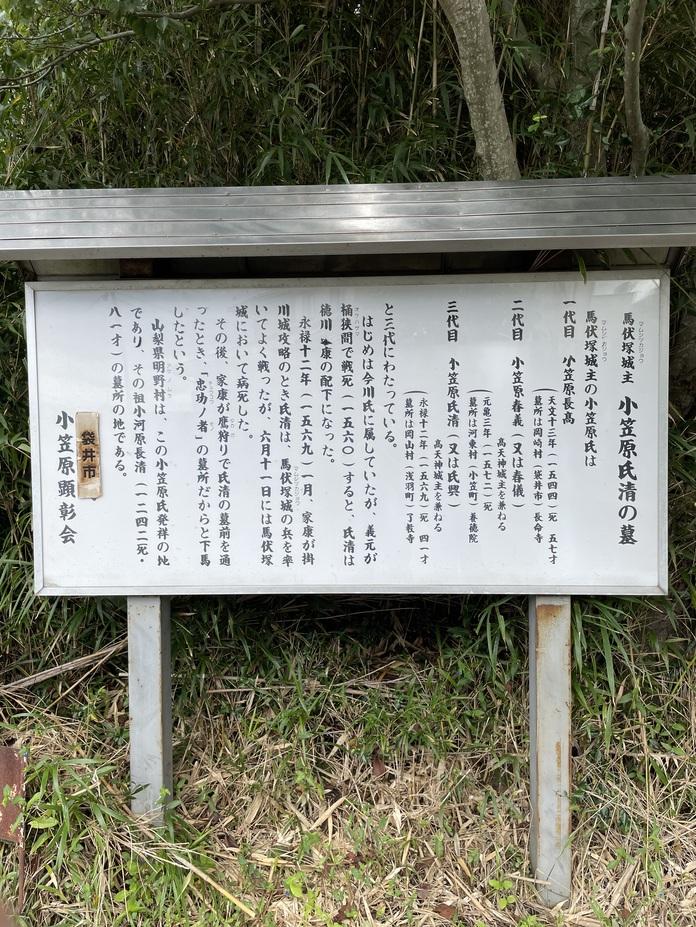 馬伏塚城碑・説明板 馬伏塚城主小笠原氏清の墓