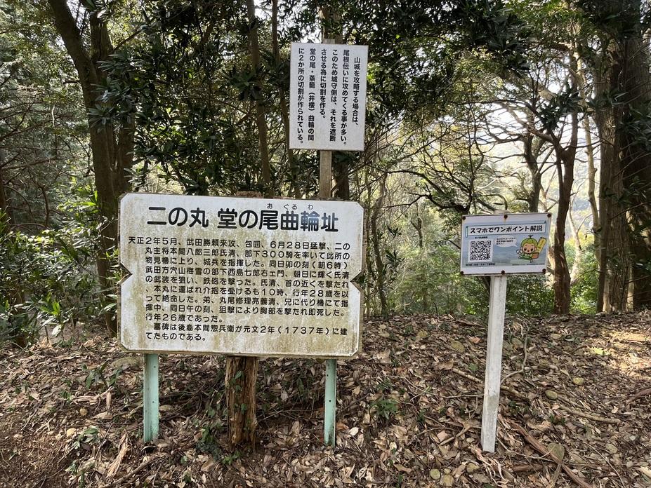 高天神城に投稿された周辺スポット(カテゴリー:遺構・復元物)、「二の丸堂の尾曲輪址」の情報がご覧頂けます。