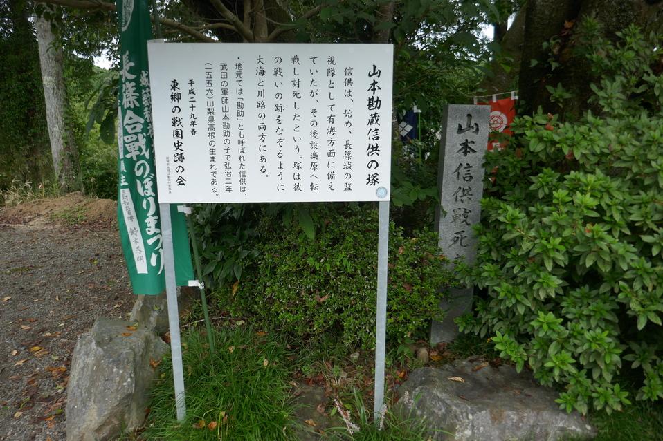 長篠城碑・説明板 山本勘蔵信供戦死之地