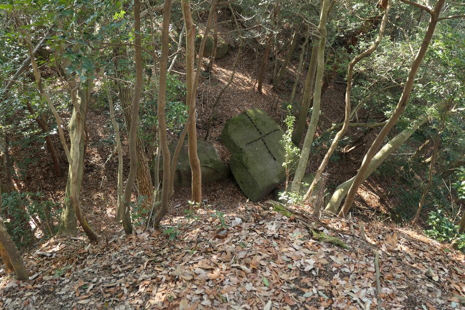 妻木城遺構・復元物 くさび跡の岩
