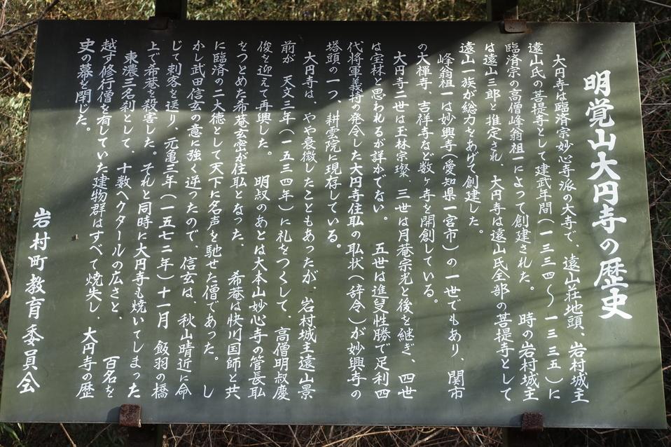 岩村城に投稿された周辺スポット(カテゴリー:碑・説明板)、「大円寺跡」の情報がご覧頂けます。