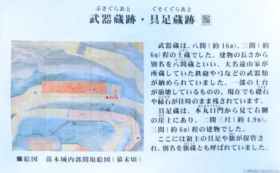 苗木城に投稿された周辺スポット(カテゴリー:遺構・復元物)、「武器蔵跡・具足蔵跡」の情報がご覧頂けます。