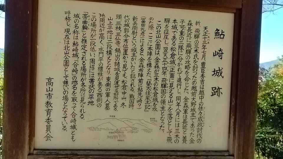 高山城に投稿された周辺スポット(カテゴリー:周辺城郭)、「鮎崎城」の情報がご覧頂けます。