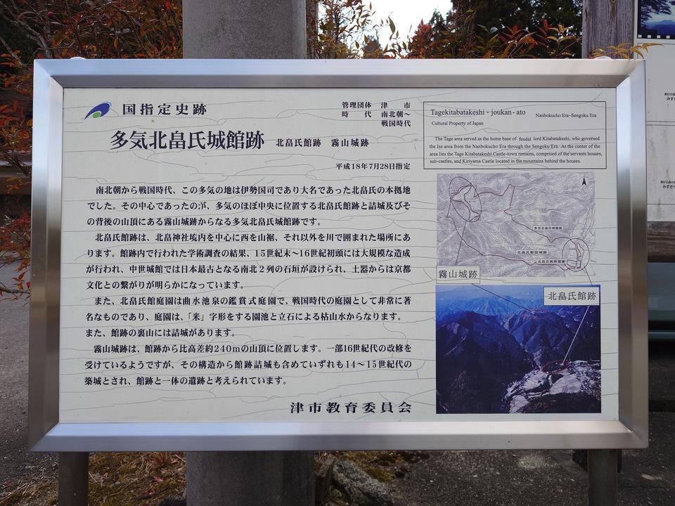 多気北畠氏城館碑・説明板 多気北畠氏城館跡説明板