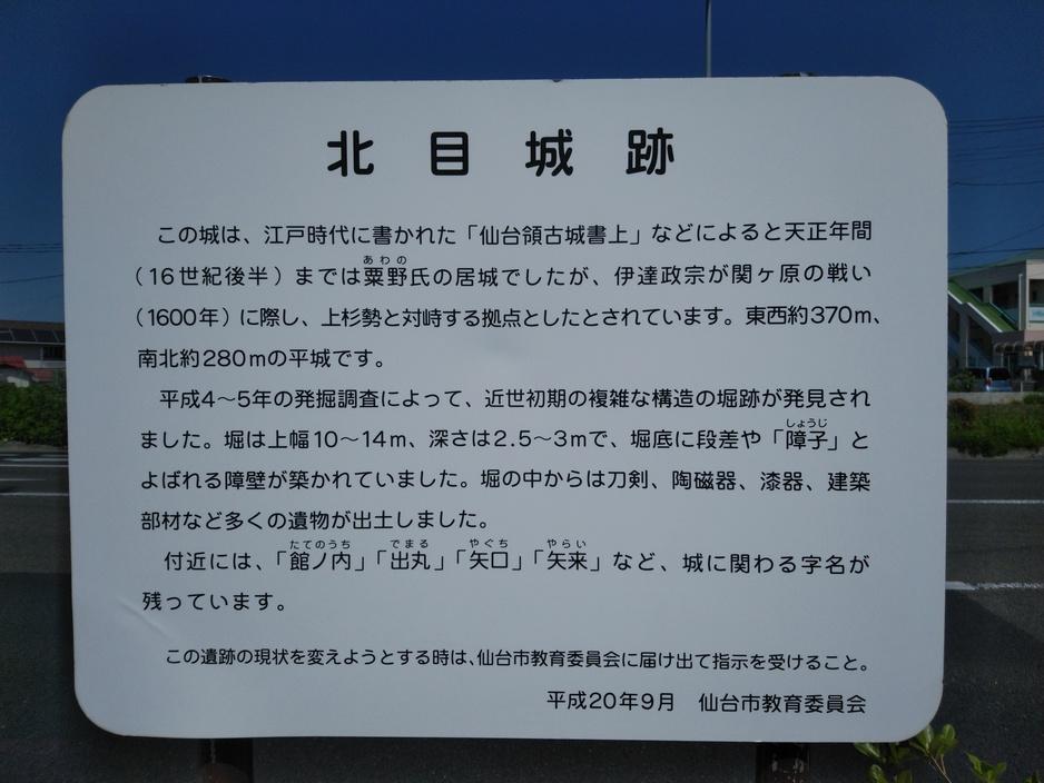 北目城碑・説明板 北目城跡説明板