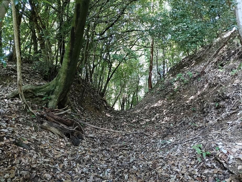 芥川山城遺構・復元物 大堀切と土塁