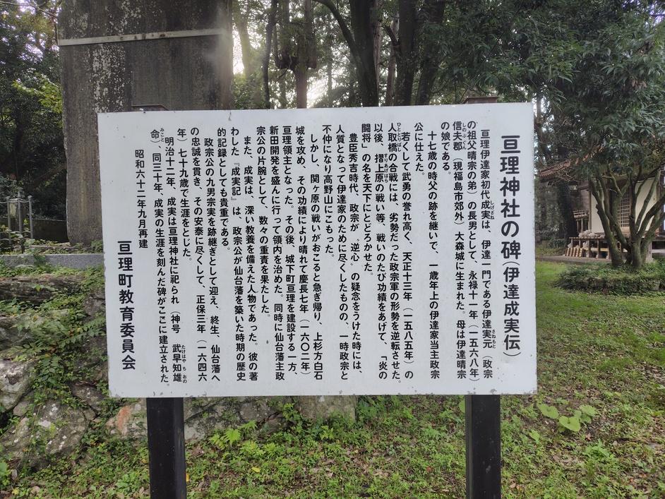 亘理城に投稿された周辺スポット(カテゴリー:碑・説明板)、「亘理神社の碑 説明板」の情報がご覧頂けます。