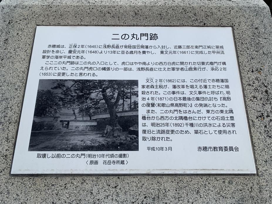 赤穂城に投稿された周辺スポット(カテゴリー:遺構・復元物)、「二之丸門跡」の情報がご覧頂けます。