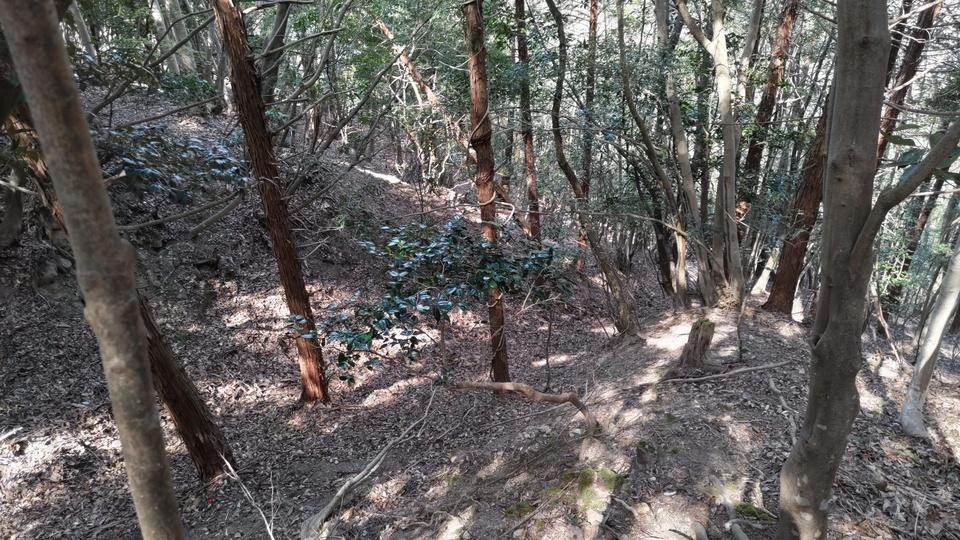 山名氏城館遺構・復元物 有子山城堀切・竪堀