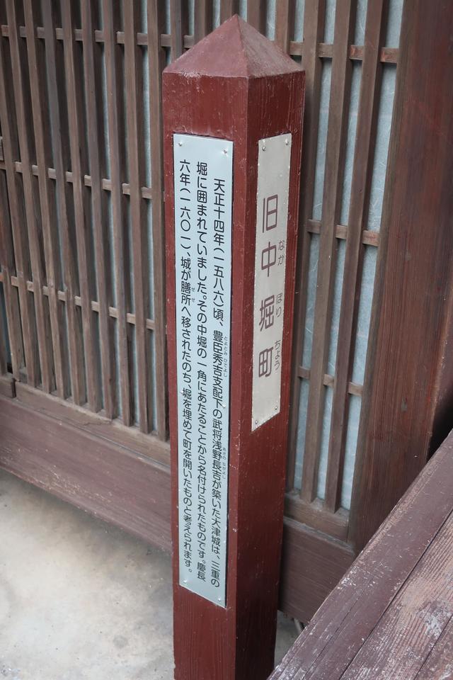 大津城碑・説明板 旧中堀町の標柱