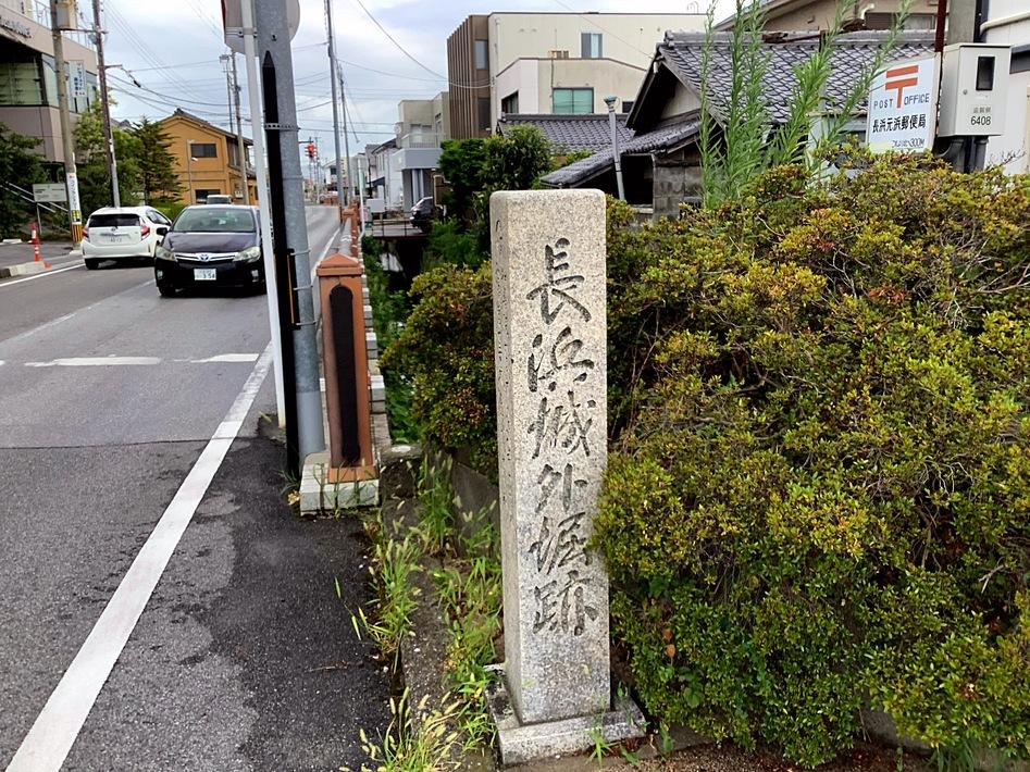 長浜城碑・説明板 外堀跡の碑