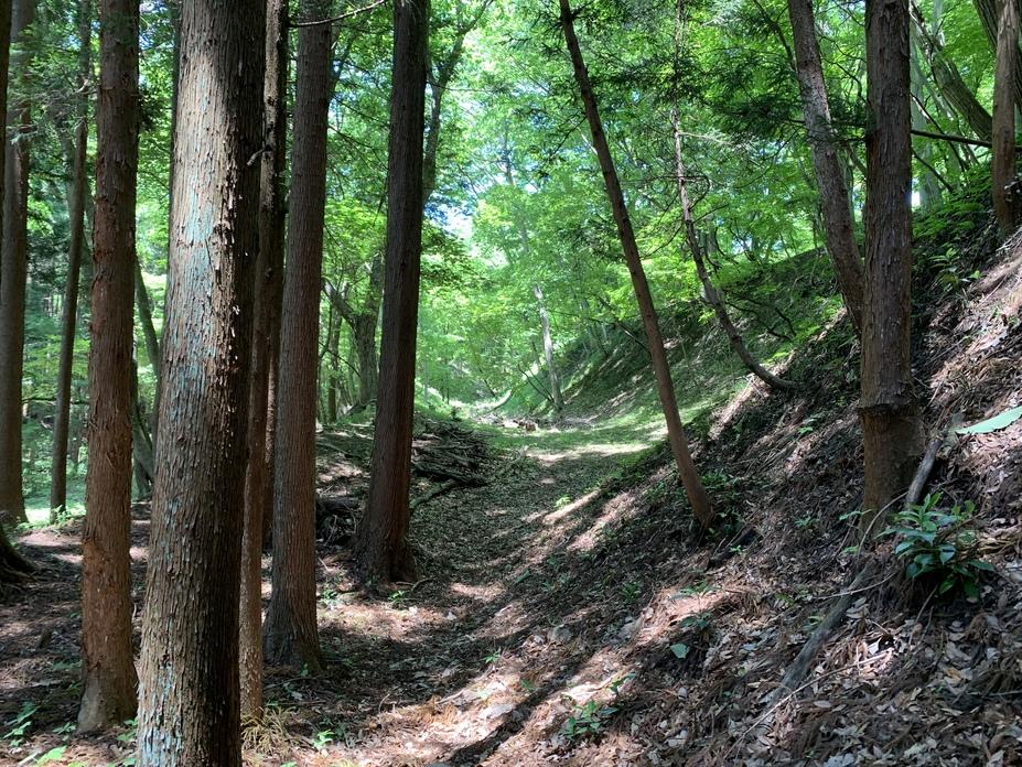 前川本城遺構・復元物 二の丸土塁と空堀(搦め手側)