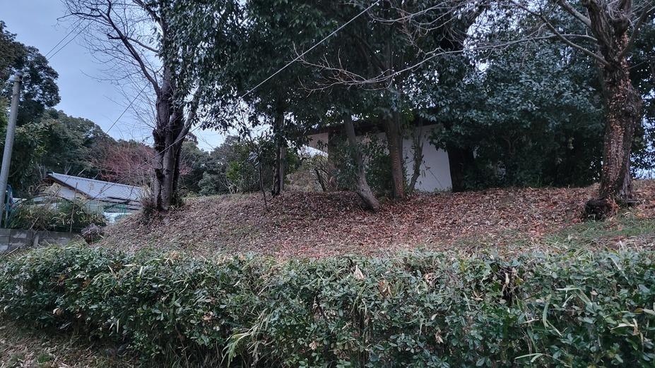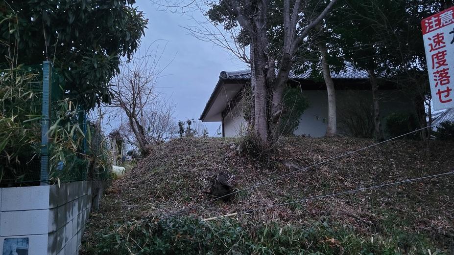 超昇寺城遺構・復元物 土塁(教行寺納骨堂の裏手)
