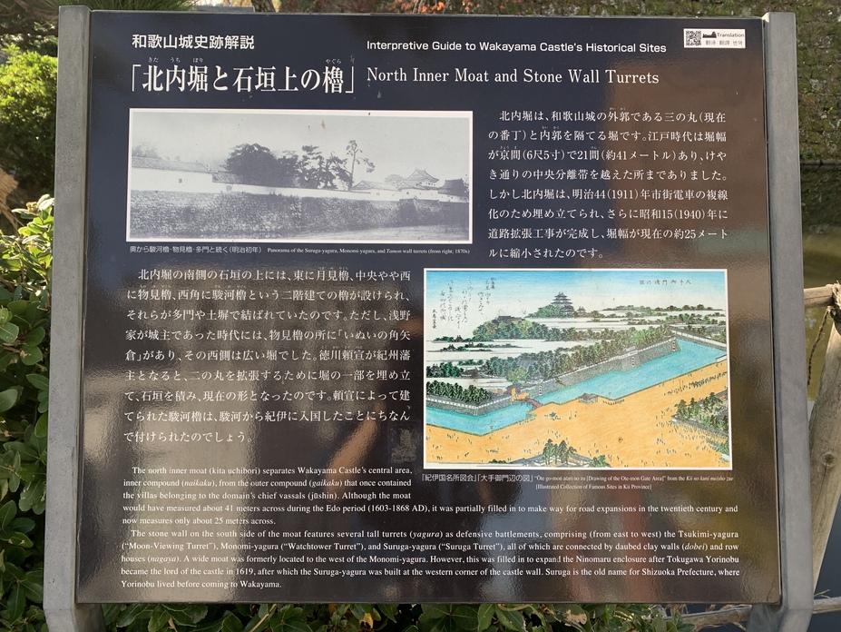 和歌山城に投稿された周辺スポット(カテゴリー:碑・説明板)、「北内堀と石垣上の櫓」の情報がご覧頂けます。