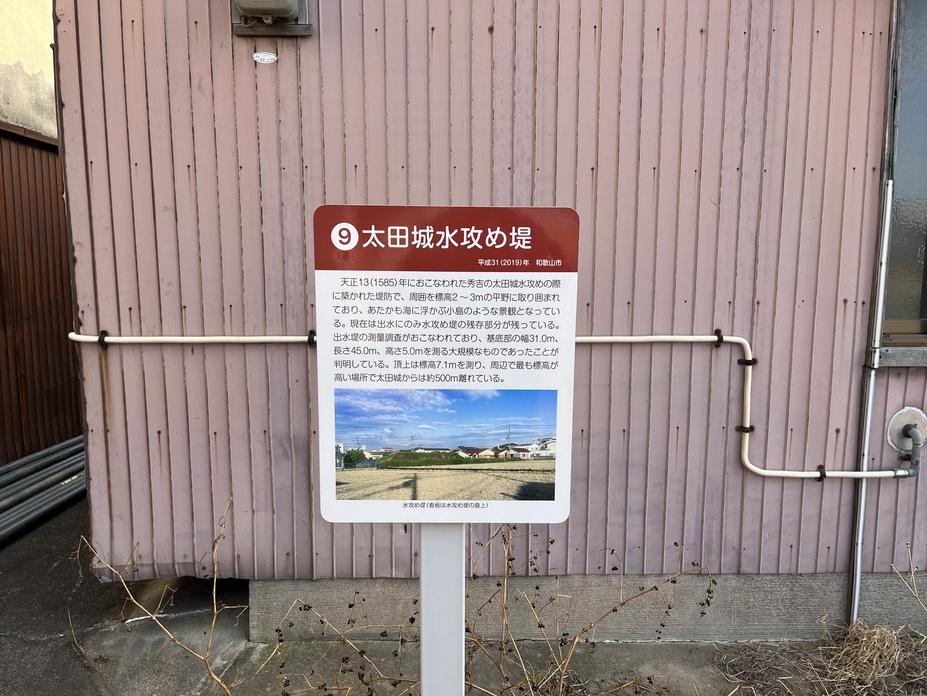 太田城碑・説明板 太田城水攻め堤 説明板
