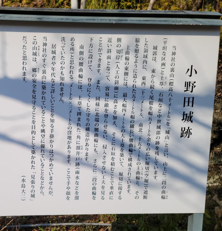 大野城に投稿された周辺スポット(カテゴリー:碑・説明板)、「小野田城の説明看板」の情報がご覧頂けます。