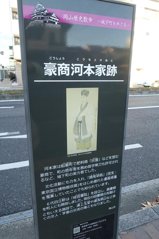岡山城に投稿された周辺スポット(カテゴリー:碑・説明板)、「豪商河本家跡」の情報がご覧頂けます。