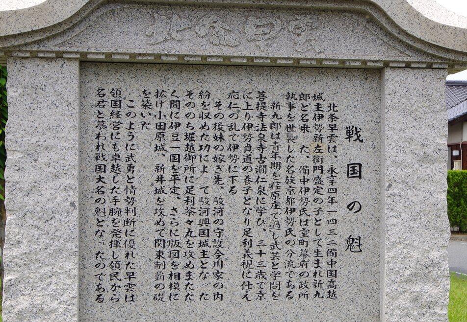 高越山城碑・説明板 北条早雲の像