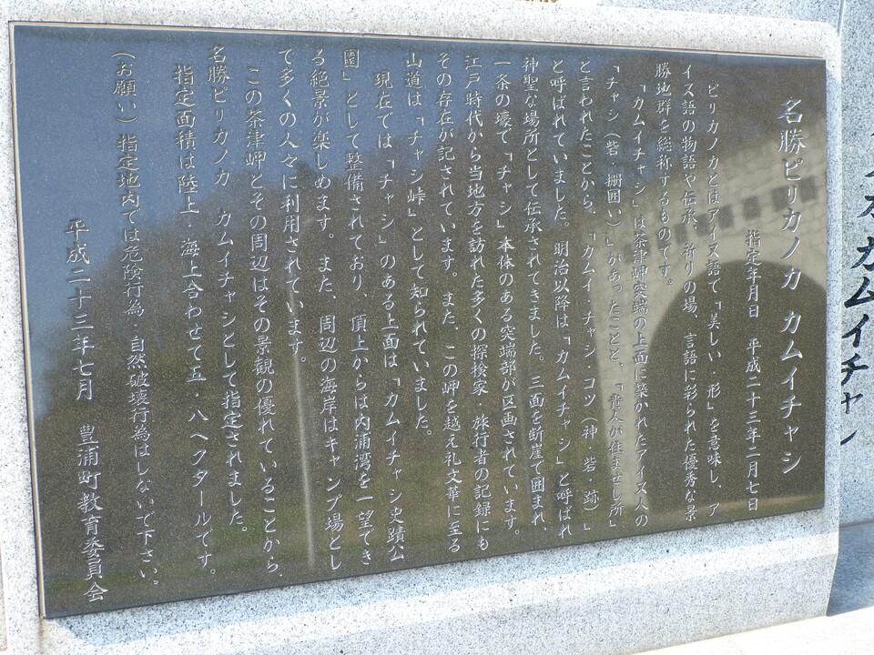 カムイチャシ碑・説明板 名勝ピリカノカカムイチャシ説明板