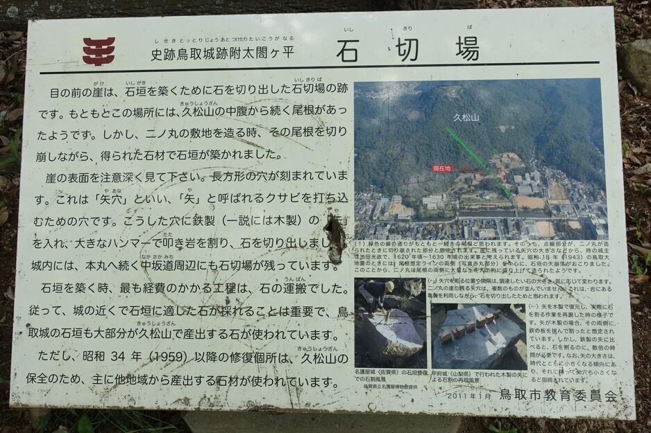 鳥取城に投稿された周辺スポット(カテゴリー:碑・説明板)、「石切場」の情報がご覧頂けます。