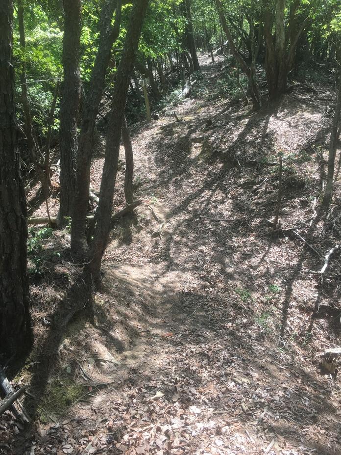 猿掛城遺構・復元物 堀切からの竪堀