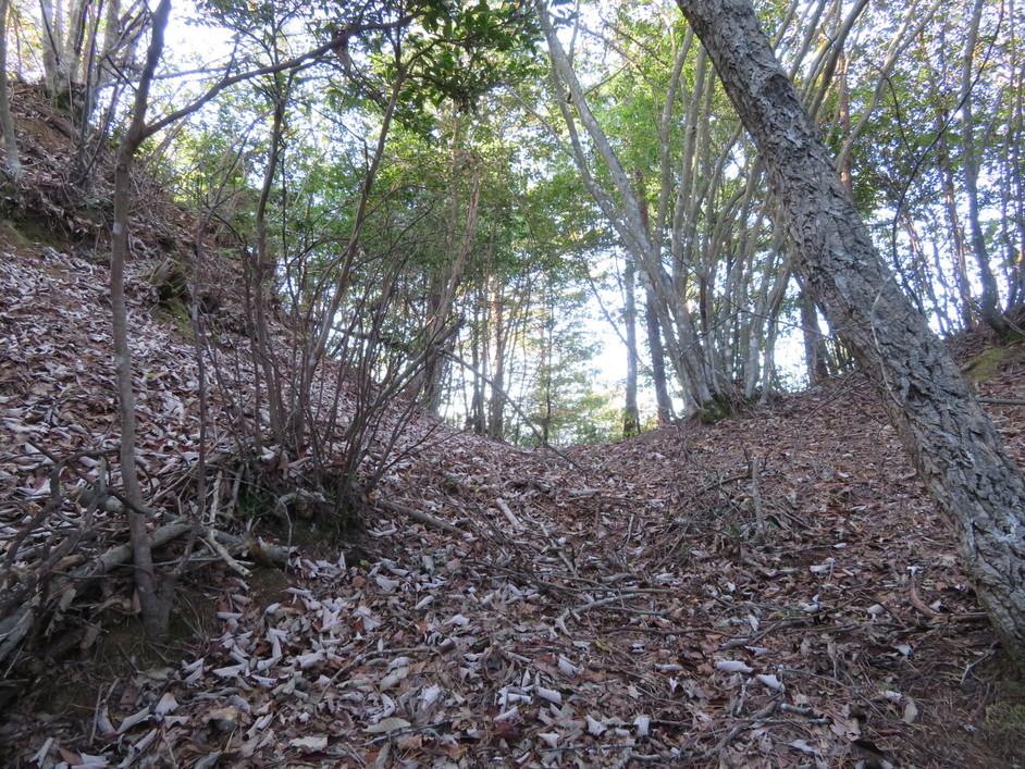 猿掛城遺構・復元物 物見櫓下の堀切