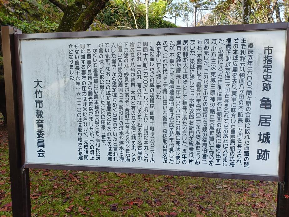亀居城碑・説明板 亀居城説明板