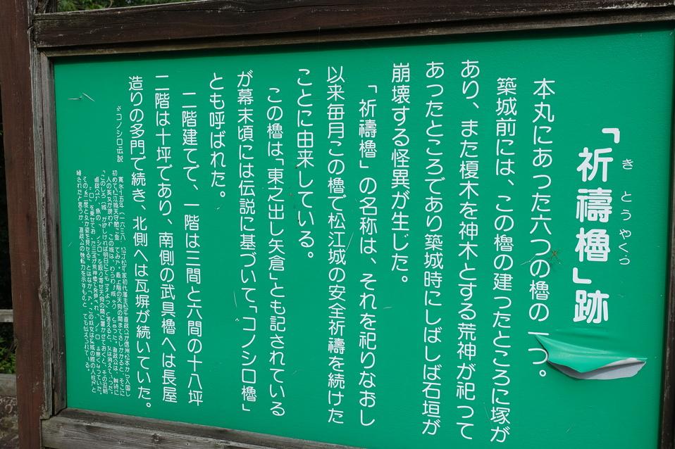 松江城に投稿された周辺スポット(カテゴリー:碑・説明板)、「祈祷櫓跡」の情報がご覧頂けます。