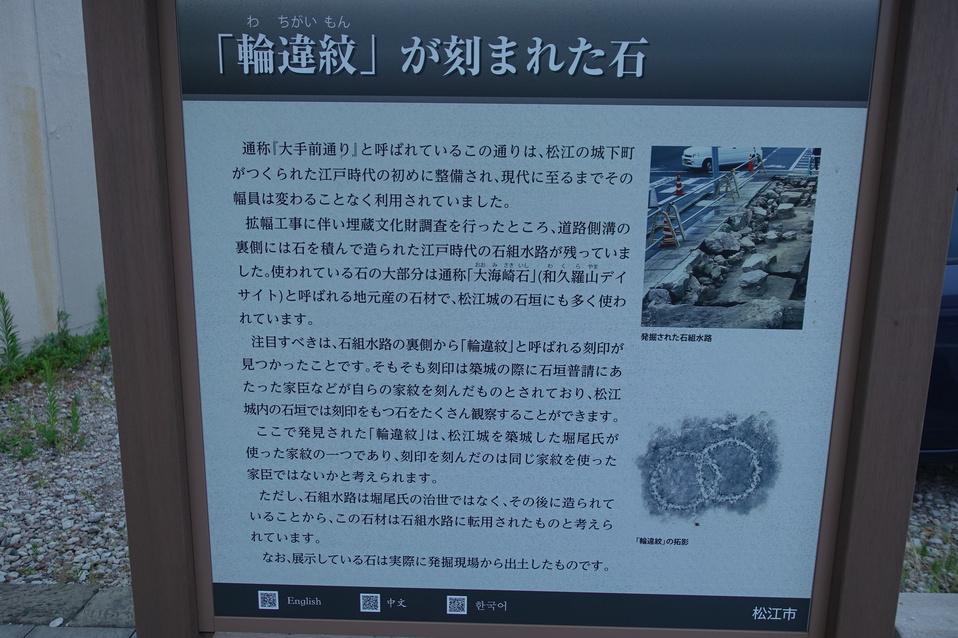 松江城碑・説明板 「輪違紋」が刻まれた石