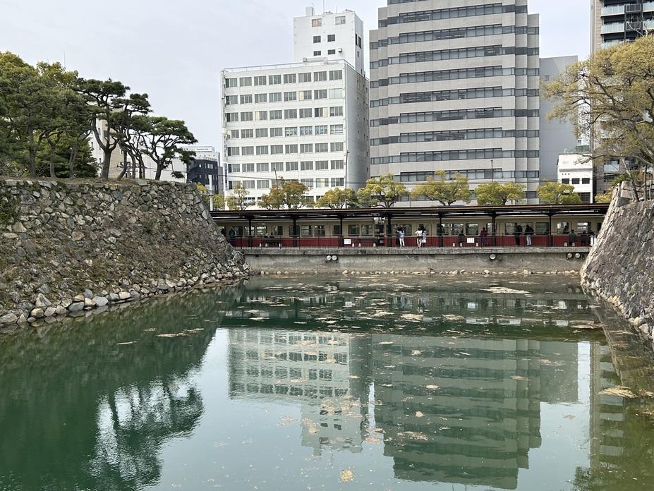 高松城その他 内堀の向こうに琴電高松築港駅。