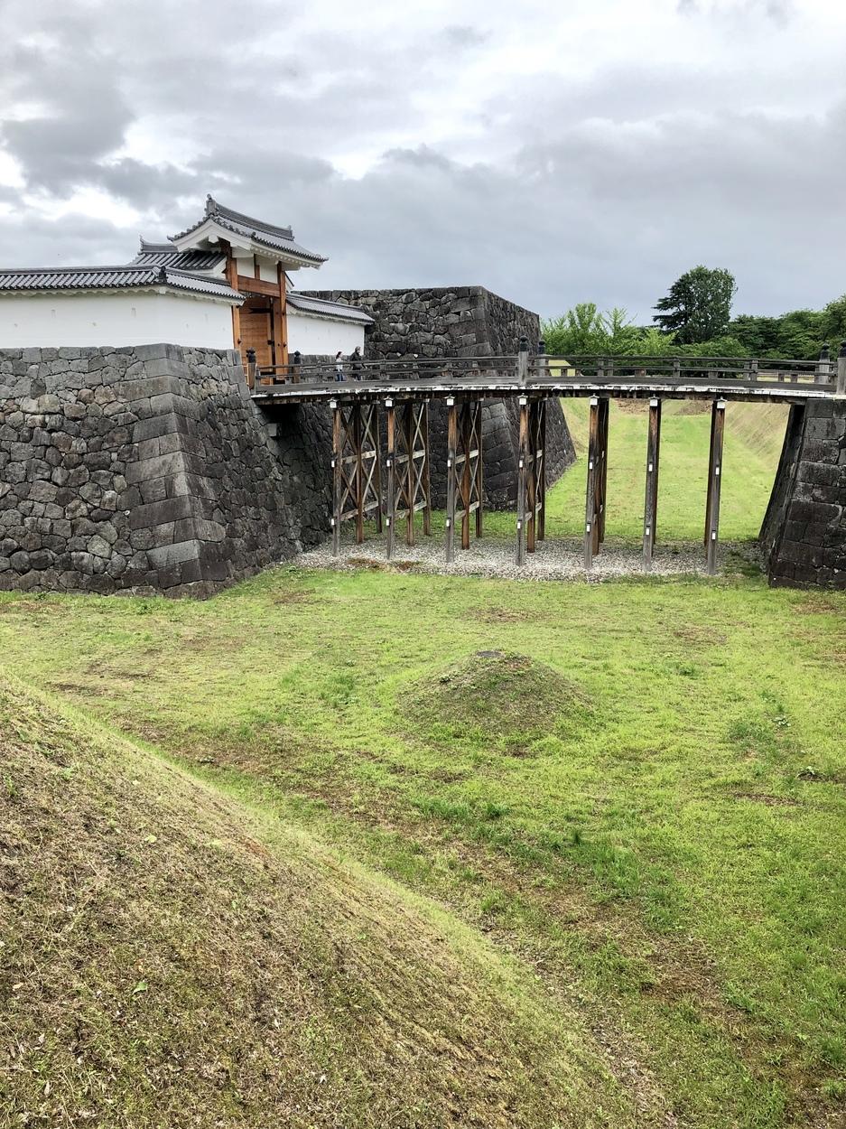 山形城遺構・復元物 本丸一文字門石垣と大手橋