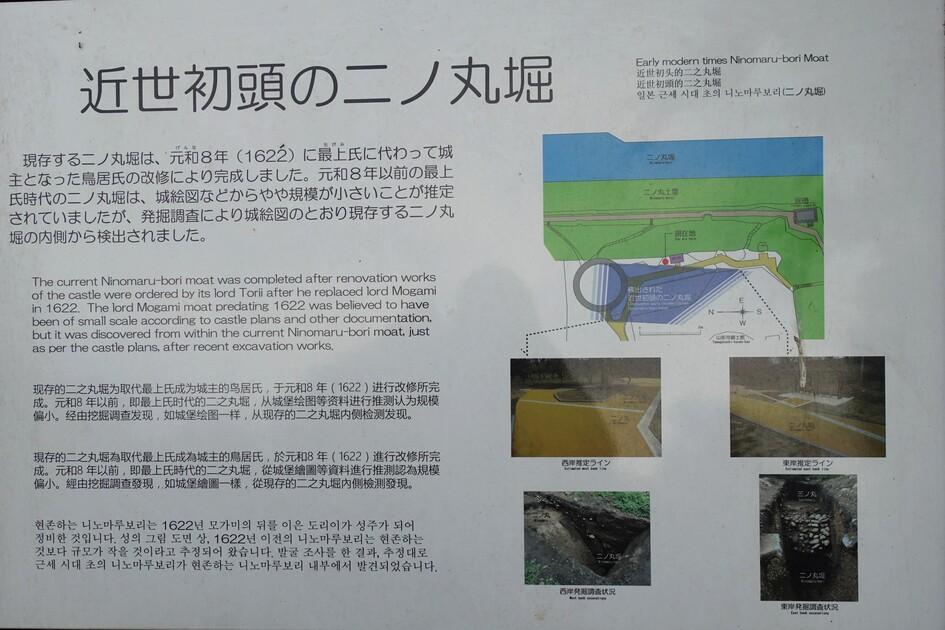 山形城碑・説明板 近世初頭の二ノ丸堀