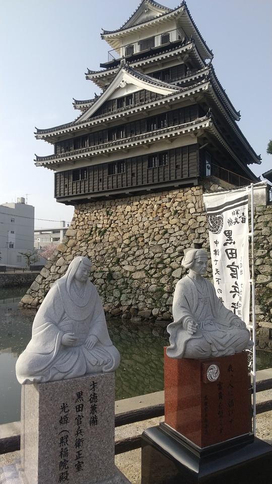 中津城その他 黒田官兵衛(如水)像と正室光姫像