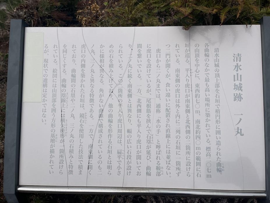 清水山城に投稿された周辺スポット(カテゴリー:遺構・復元物)、「一の丸跡」の情報がご覧頂けます。