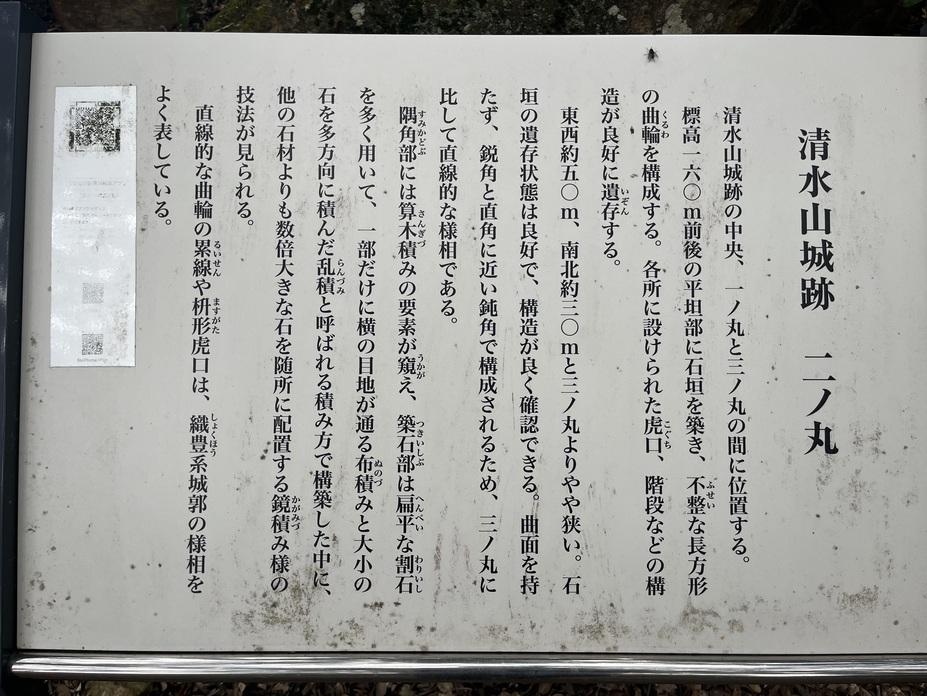 清水山城に投稿された周辺スポット(カテゴリー:碑・説明板)、「二の丸跡案内板」の情報がご覧頂けます。