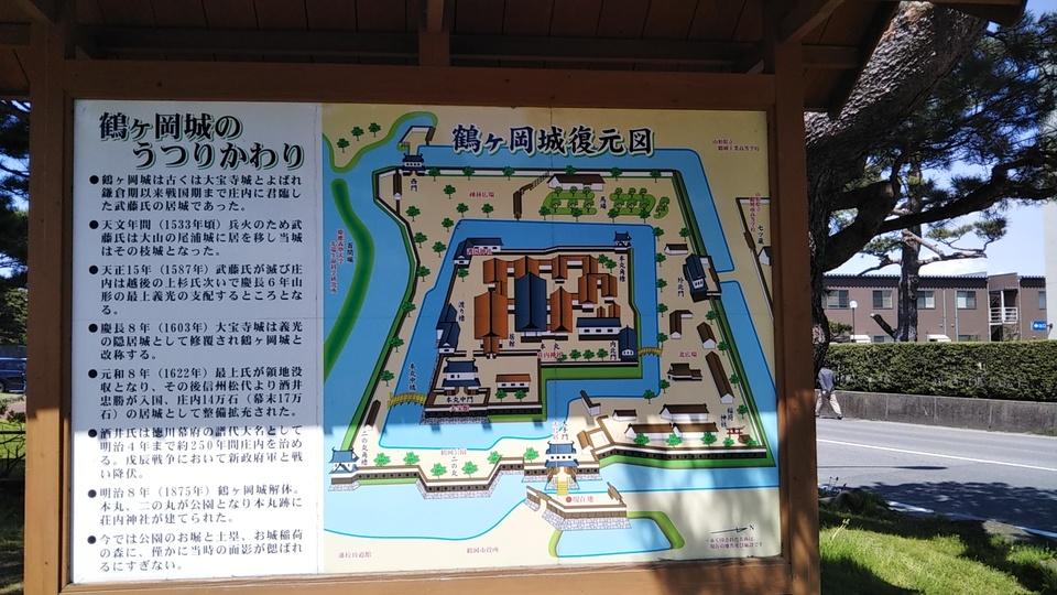 鶴ヶ岡城碑・説明板 鶴ケ岡城復元図