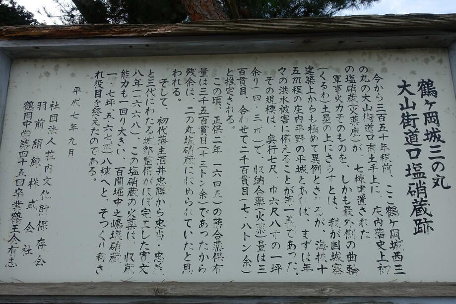 鶴ヶ岡城に投稿された周辺スポット(カテゴリー:碑・説明板)、「三の丸大山街道口塩硝蔵跡」の情報がご覧頂けます。